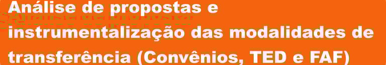 Objetivo geral: Capacitar os servidores e colaboradores SEIDIGI/MS para realizar a análise técnica, jurídica e orçamentária de propostas de transferências voluntárias e obrigatórias, bem como aplicar corretamente os instrumentos legais correspondentes: Convênio, Termo de Execução Descentralizada (TED) e Fundo a Fundo (FAF), conforme os normativos vigentes.